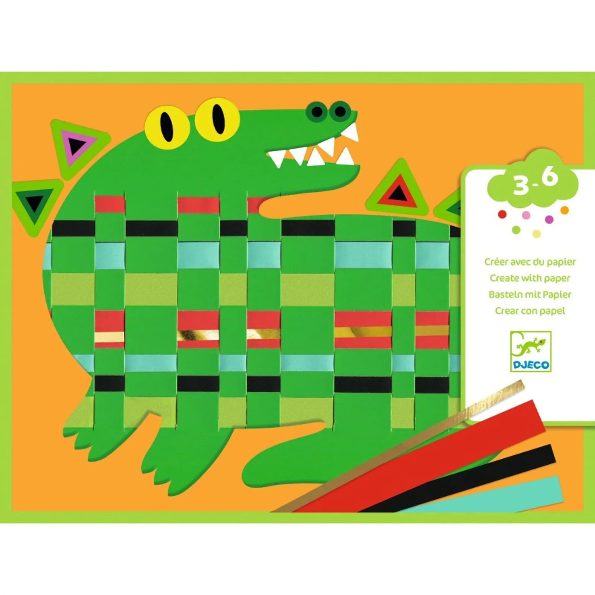 Create colourful animal creations with this fantastic weaving kit by Djeco. As the name of the kit explains, simply weave the paper strips in front, behind, in front to create the patterns.