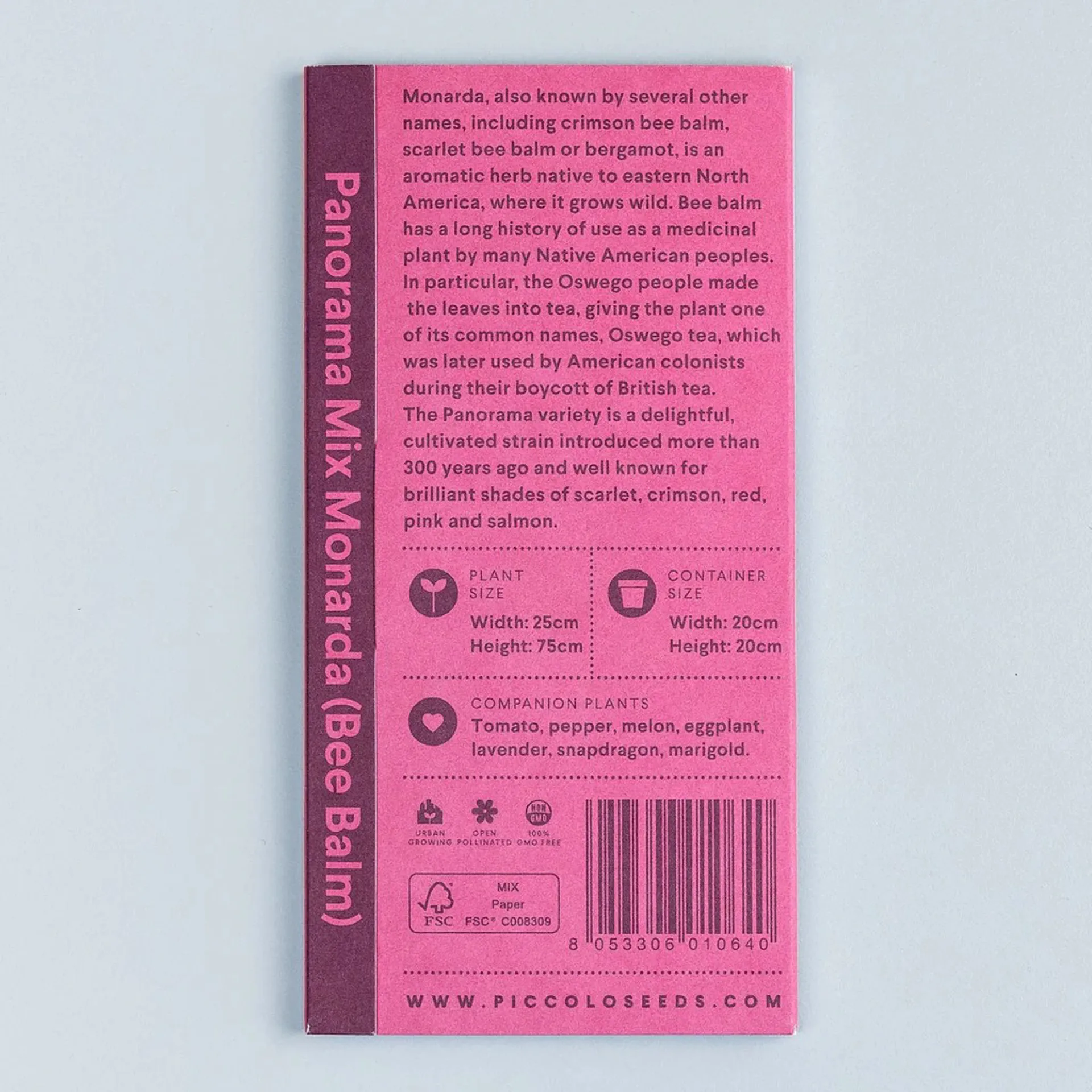 Grow your own Monarda with Piccolos seed pack. These incredible seeds are the perfect addition to any garden and once grown make an amazing addition to any meal.