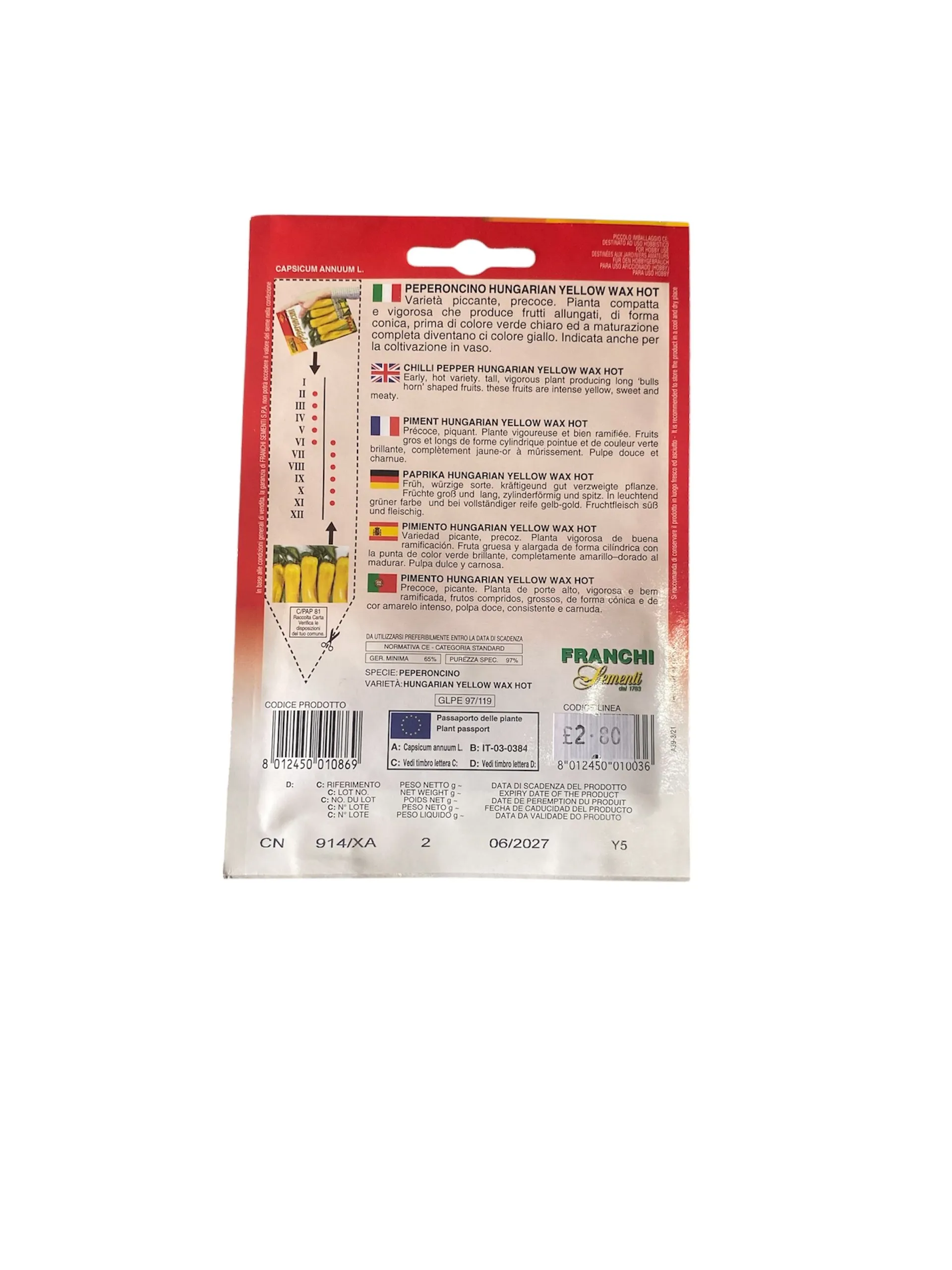 Feel the proudness of growing your own produce with Seeds Of Italy Hungarian Yellow Wax Hot Pepper Seeds. Containing plenty of seeds, you'll have plenty of fresh chillies at your disposal at all times or plenty of re-tries!