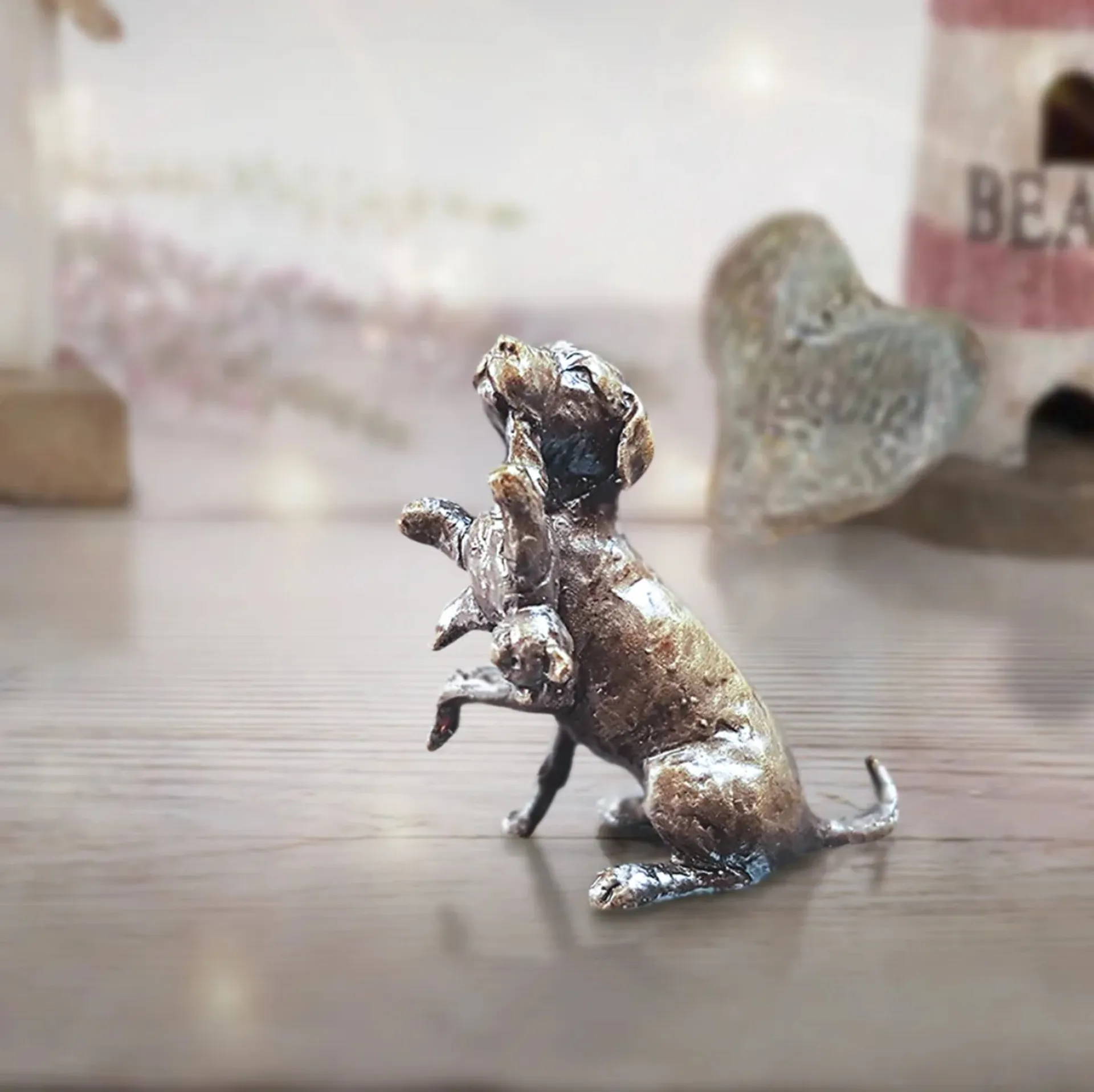Butler and Peach Labrador with Teddy Bronze Miniature is the perfect way to add style, class or joy to any workspace or counter.