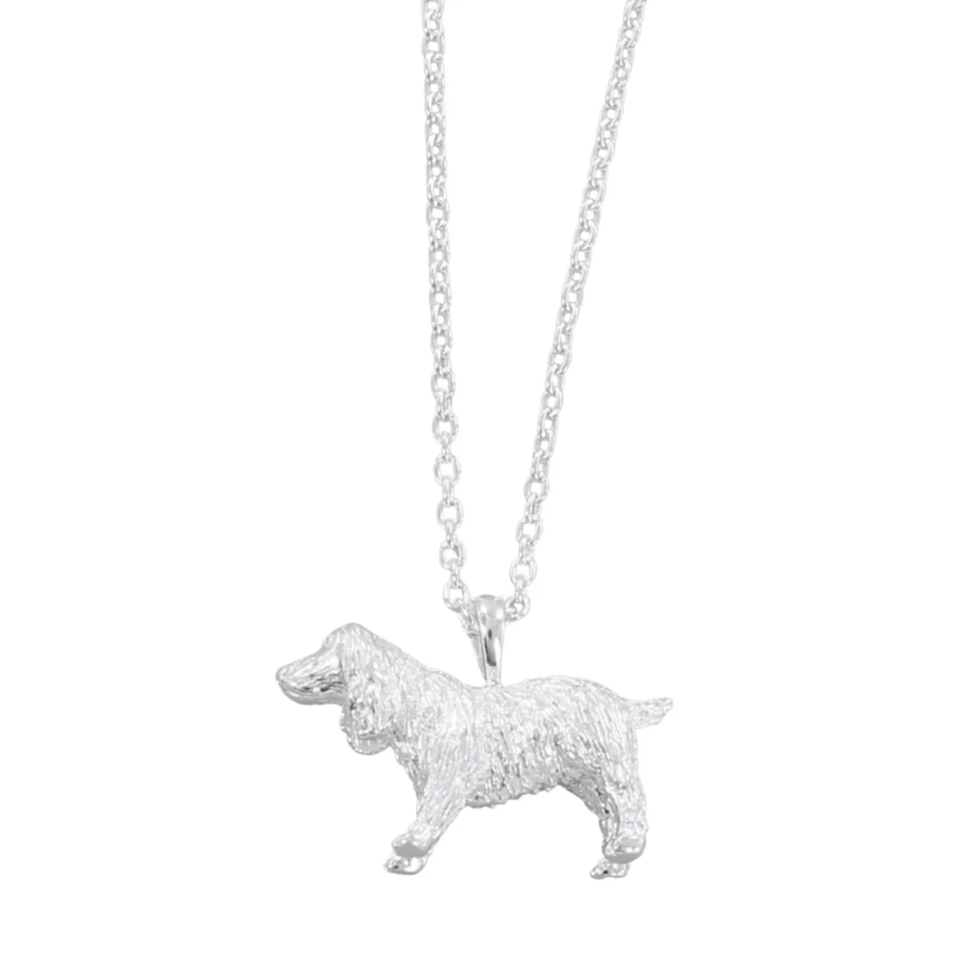 A graceful sterling silver Spaniel pendant on an adjustable chain - perfect for dog lovers and charm jewellery fans.