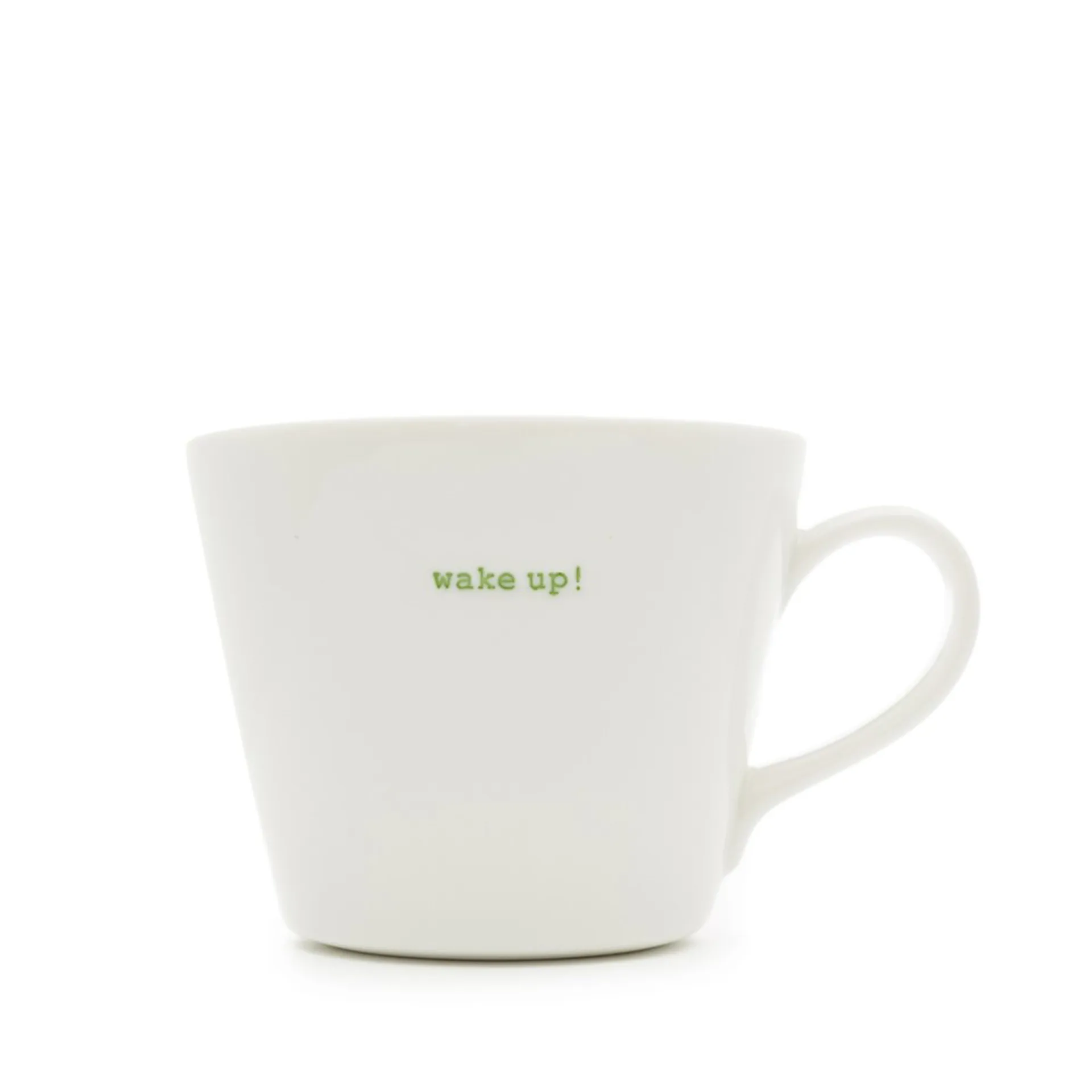 Hand-finished Keith Brymer Jones authentic standard Bucket Mug (350ml) with wake up! hand-debossed & hand-coloured for a uniquely crafted piece of stylish homeware. Part of the Keith Brymer Jones Word Range.