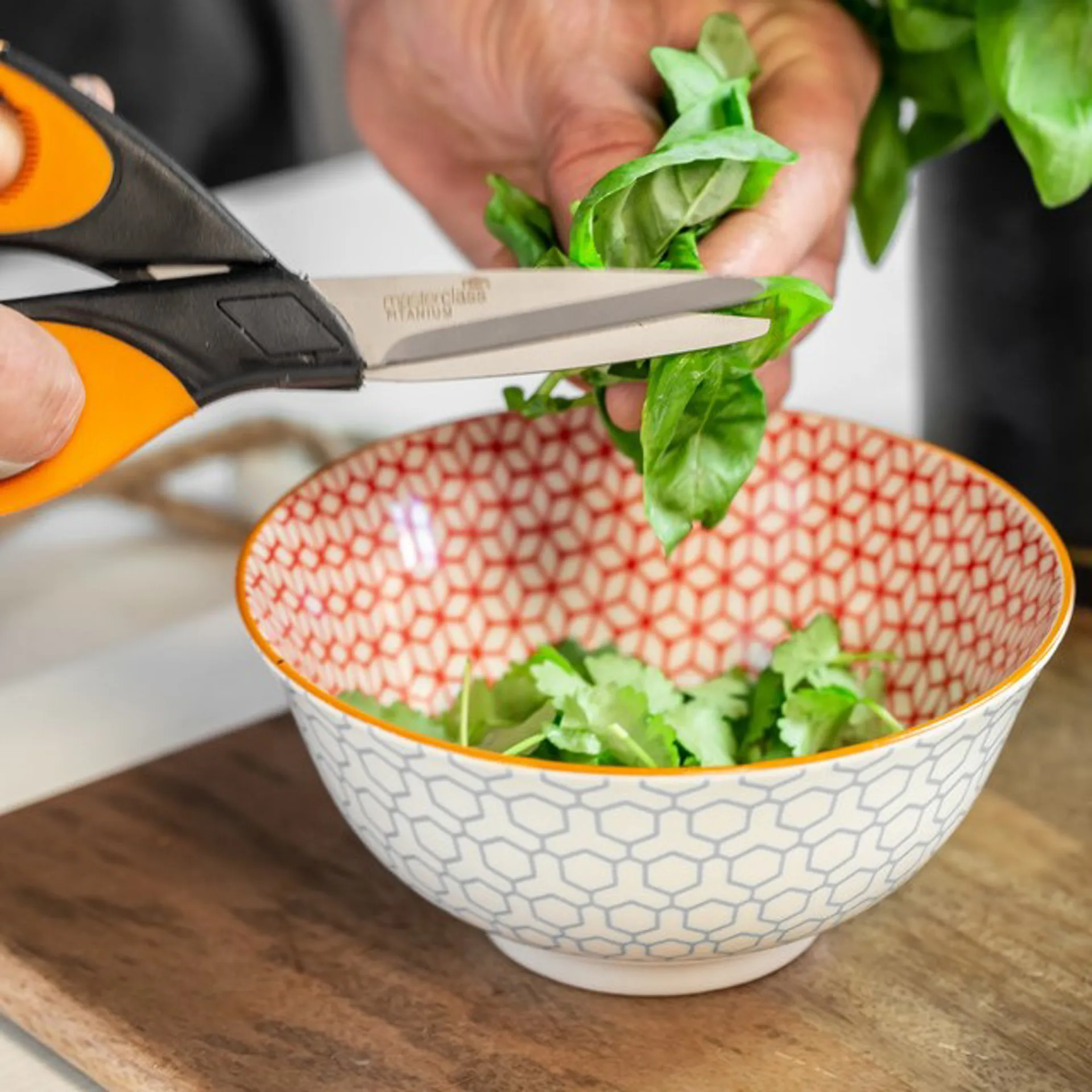 Write a review for KitchenCraft Geometric Blue and Red Bowl